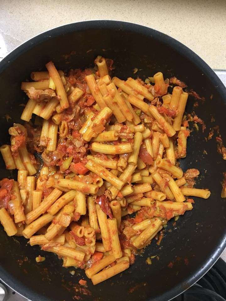 פסטת עדשים אדומות ברוטב עגבניות וטונה