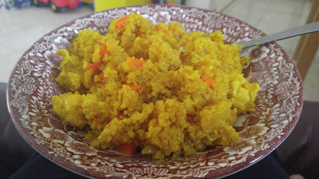 מנה מהירה בסיר אחד! תוכלו גם להקפיא לאחר ההכנה. קינואה זה דגן עשיר בהשוואה לדגנים כמו אורז או חיטה ותוצריה. המרקם פה מעורב ומצריך גם לעיסה מיומנת יחסית (בגלל חתיכות העוף)